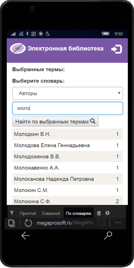Версия модуля «Электронная библиотека» для смартфонов (опция) обеспечивает удобную работу с электронными каталогами библиографических данных и цифровым информационным контентом при использовании мобильных устройств с небольшими размерами экранов (смартфоны, планшетные компьютеры, другие устройства).